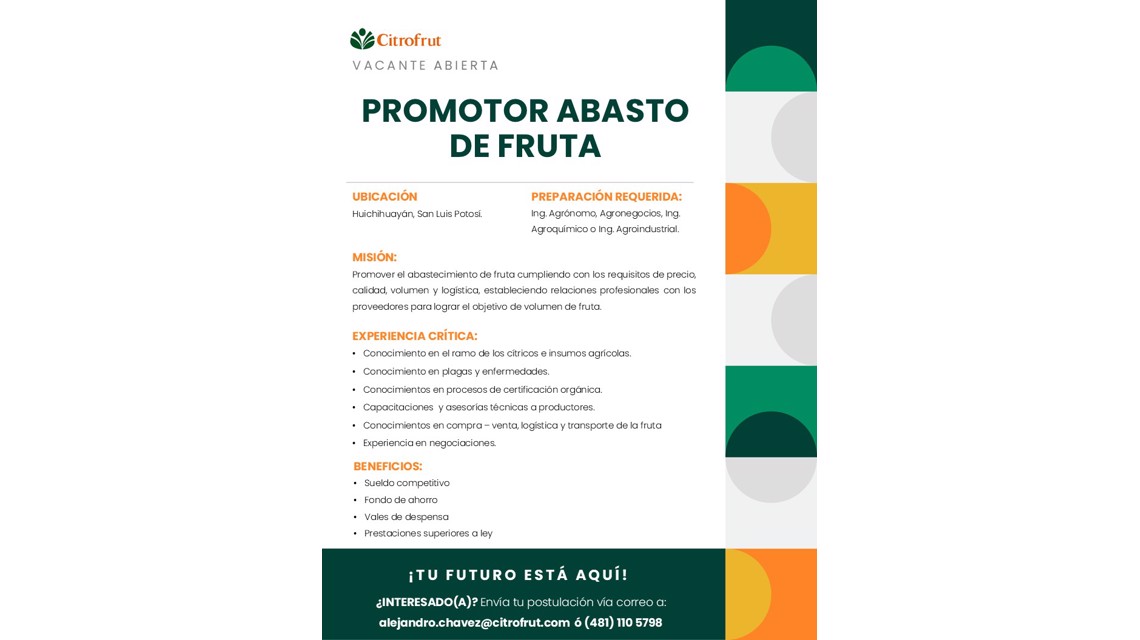 - Conocimiento en el ramo de los cítricos e insumos agrícolas.